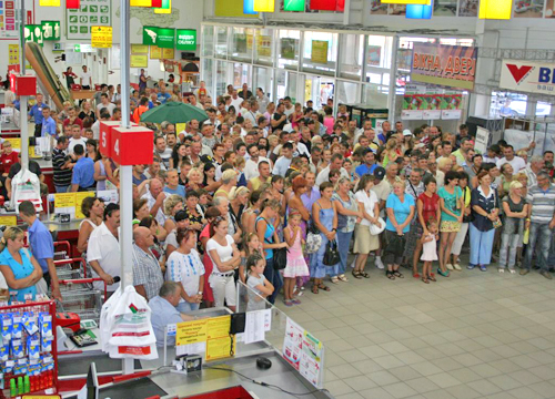 Парковка «Новой Линии» Херсон наполнялась желающими получить подарки и поучаствовать в розыгрыше ценных подарков с самого утра.