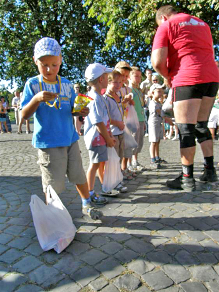 Посоревноваться в силе и ловкости могли и зрители в разных конкурсах, а также маленькие болельщики, которые на скорость переносили «чемоданы» по 3-4 килограмма на расстояние 15 метров.