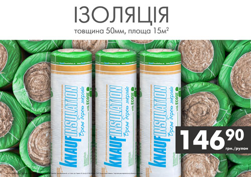 На помощь Вам придет национальная сеть декоративно-строительных гипермаркетов «Новая Линия», где сейчас вы можете приобрести изоляцию ТМ KNAUF по цене - всего 146,90 грн за рулон. Толщиной 50 мм, рулон изоляции поможет утеплить до 15 м2 площади.