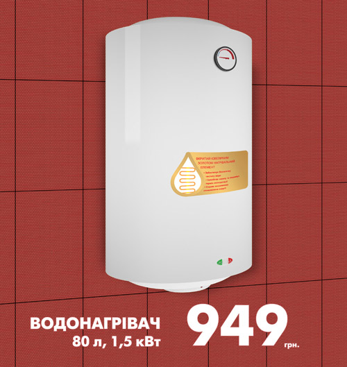 Национальная сеть декоративно-строительных гипермаркетов «Новая Линия» предлагает Вам отличное решение проблемы нагрева воды – водонагреватель ТМ Aquila, емкостью 80 л по суперцене - 949грн!