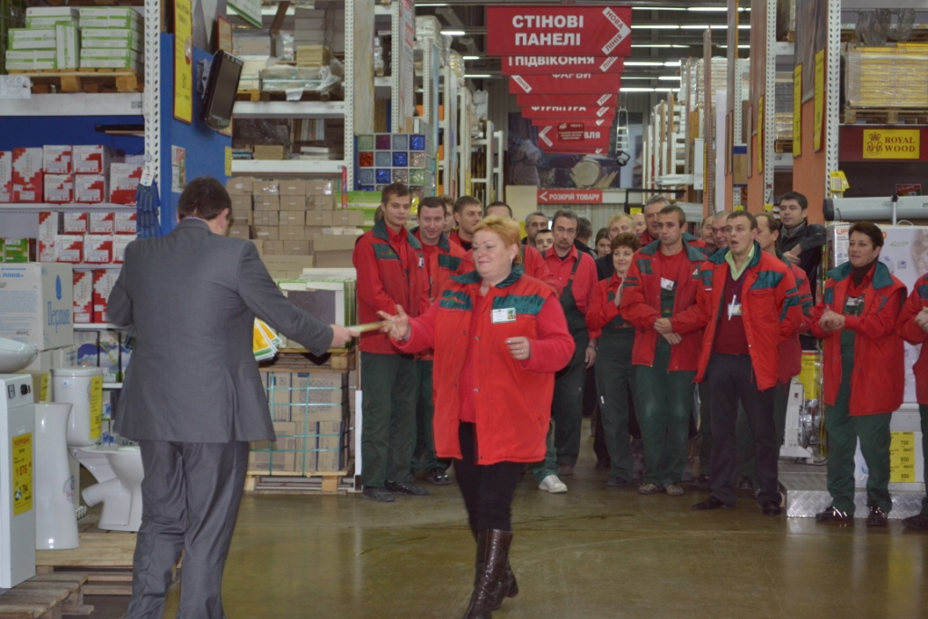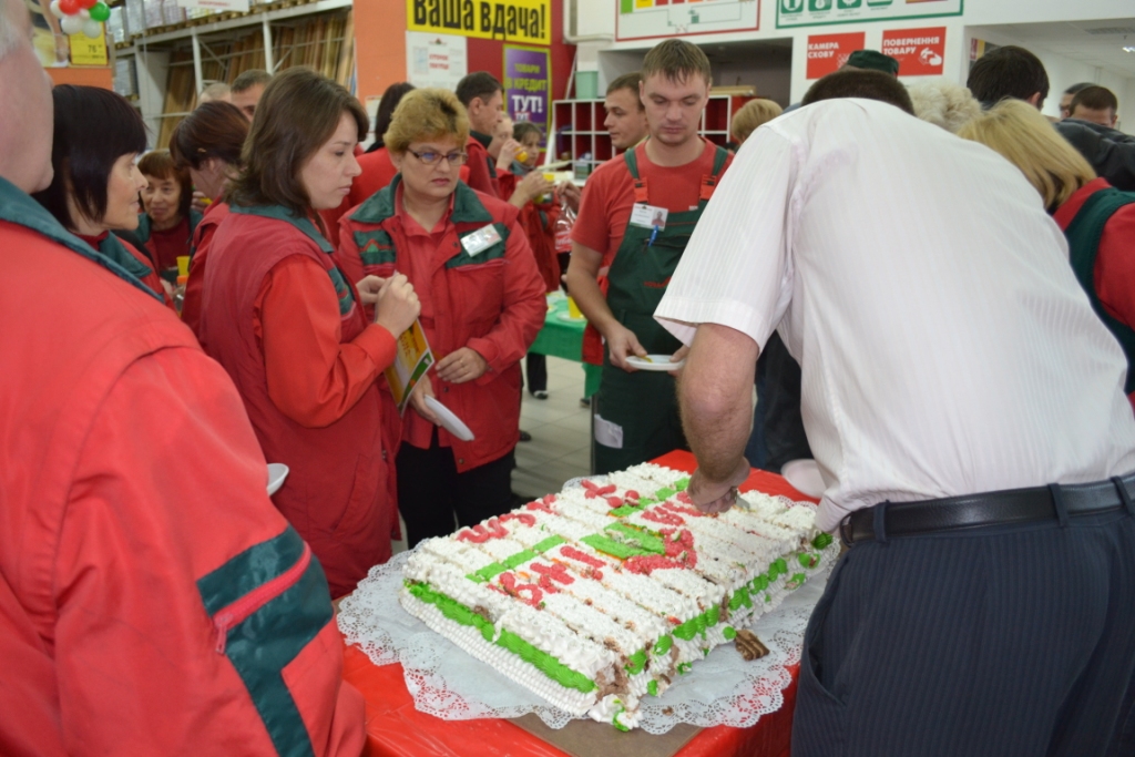 Минувшая суббота в «Новой Линии» для всех сотрудников гипермаркета в Киеве на Бальзака, 65/1 началась с поздравления всех сотрудников с седьмым Днем Рождения торгового центра, разрезания праздничного торта и вручения грамот сотрудникам за их плодотворную работу, успехи и инициативность.