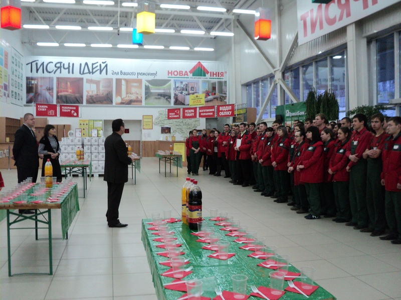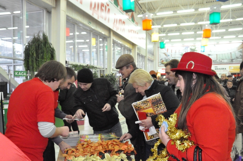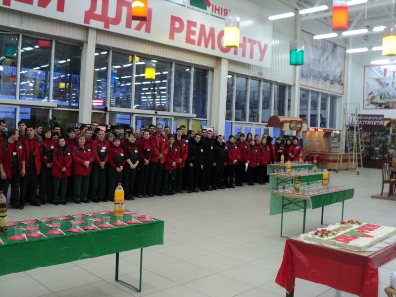 Руководство гипермаркетов с самого утра поздравили весь персонал, пожелав удачи и творческих успехов сотрудникам торговых центров.