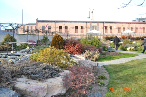 Приятный экскурсовод, с видом добродушного хозяина, встретил нас во дворе завода, и повел по ухоженным тропинкам к музею Шабо. Вокруг радовали глаз цветущие клумбы, искусственные водоемы с фонтанчиками, уютные беседки. Всюду чувствуется рука заботливого хозяина. На территории расположились также цеха по производству вина, ровные ряды емкостей и даже в воздухе чувствуется легкий пьянящий аромат вина.