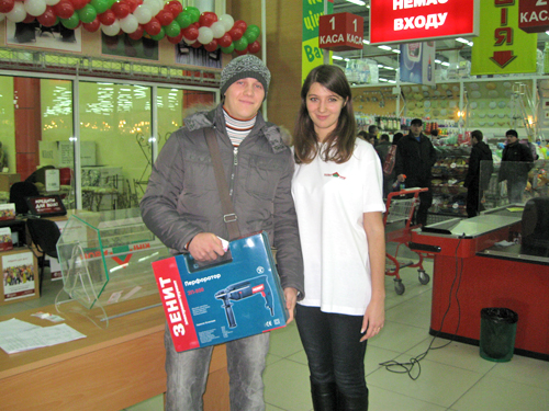 Минувшую неделю во всех торговых центрах гипермаркета «Новая Линия» проходила неделя с торговой маркой «Зенит Профи». Каждый покупатель электроинструмента ТМ «Зенит» и «Зенит Профи» принимал участие в розыгрыше главных призов- перфоратора и шуруповерта.