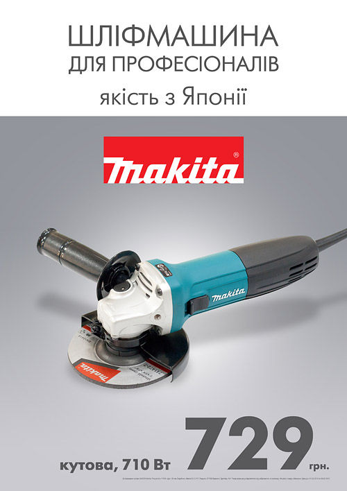 Только сейчас и только в сети гипермаркетов «Новая Линия» Вы можете приобрести шлифмашину Makita по цене всего 729 грн.