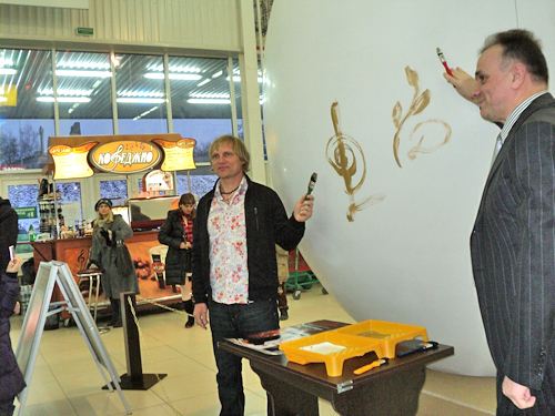После завершения пресс-конференции инициаторы мероприятия нарисовали первые узоры на большой "Чудо-писанке", которая представит Луцк и Волынь в столице Украины.