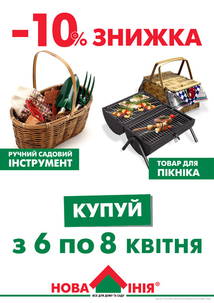 6, 7 и 8 апреля приобретите ручной садовый инструмент или товары для пикника и гарантированно получите скидку 10%!