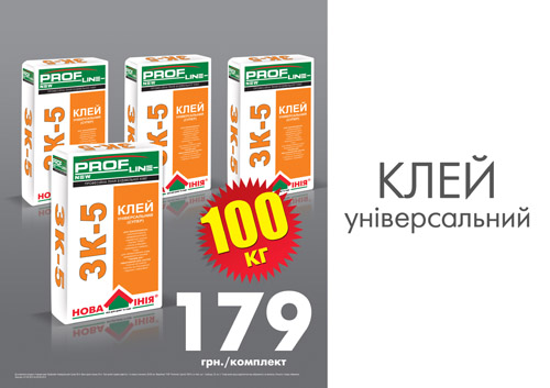 При покупке 4 мешков универсального суперклея ТМ "Профлайн" Вы платите по сниженной цене – всего 179 грн.