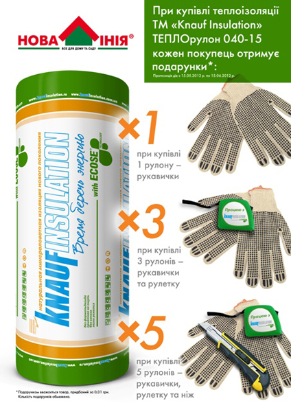 Приобретайте изоляцию в декоративно-строительных гипермаркетах «Новая Линия» и гарантированно получайте подарки! Фирменные брендированные перчатки, рулетка или нож станут незаменимыми помощниками в быту.