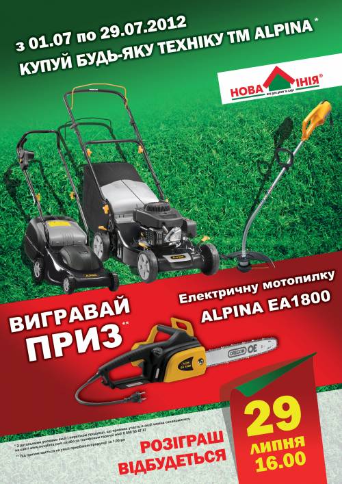 Купите любую технику представленной торговой марки в декоративно-строительных гипермаркетах «Новая Линия» и получите шанс выиграть главный приз - электрическую мотопилу!