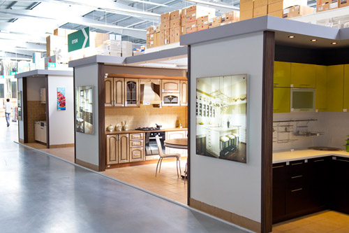 Шоу-румы кухни представляют собой полностью укомплектованное кухонное пространство, в котором представлено все, что вы можете найти на своей кухне - от салфеток и ножей до варочных поверхностей, кухонных столов и стульев и освещения. Товары, представленные в шоу-руме обозначены удобными артикулами с указанием ряда и места, чтобы покупателю было удобнее приобрести заинтересовавшую его вещь.