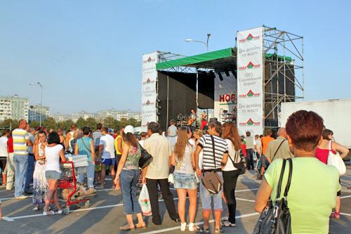 Всех наших гостей ожидало грандиозное шоу с выступлением группы "Скрябин", розыгрышами билетов на концерт Мадонны, зажигательное выступление шоу-балета, выступление "сумасшедших физиков" а напоследок, когда уже стемнело, тысячи гостей которые собрались возле сцены на парковке гипермаркета "Новая Линия", смогли увидеть феерическое лазерное шоу!