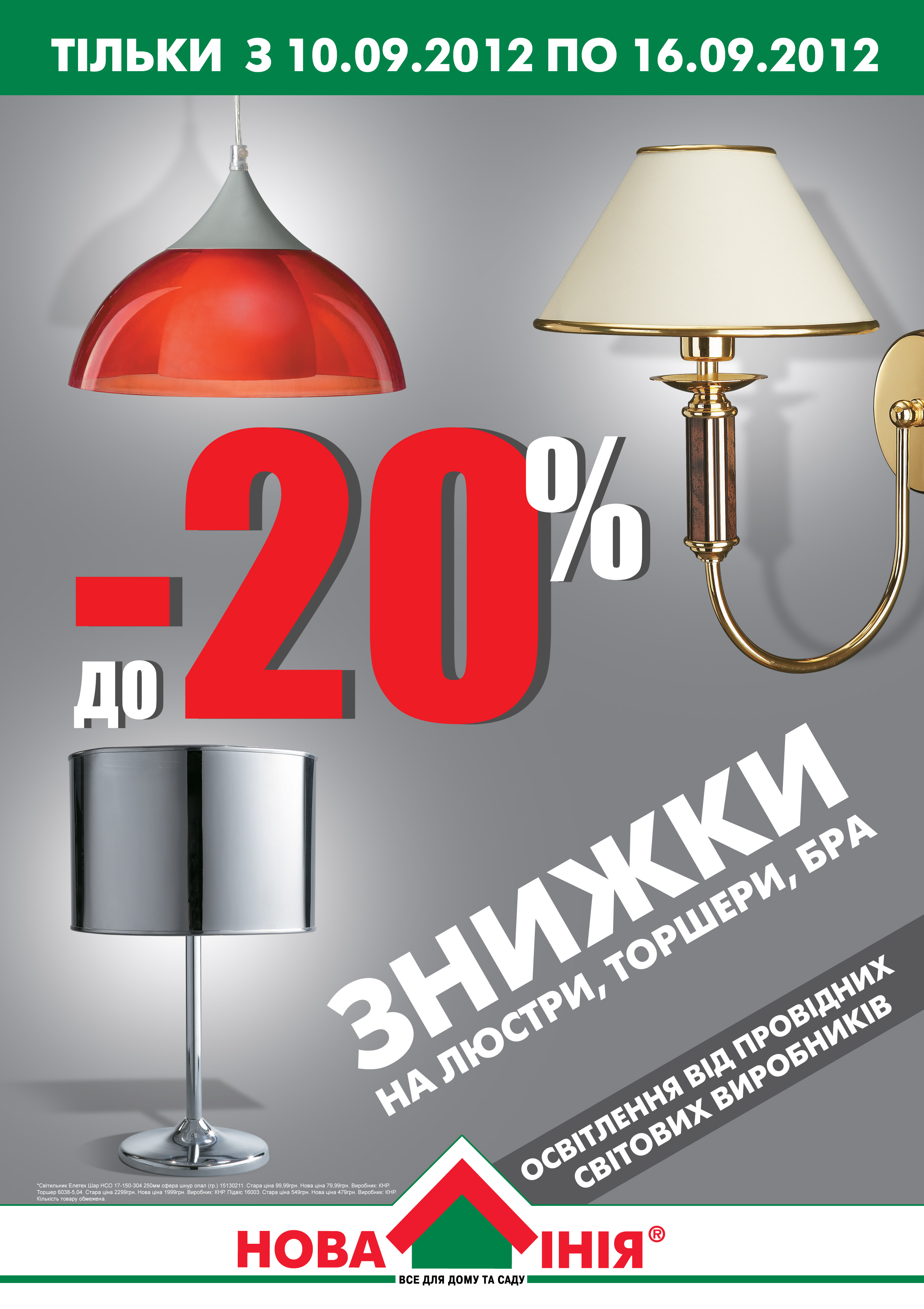 Приобретайте люстры, торшеры и бра с хорошими скидками до -20% !
