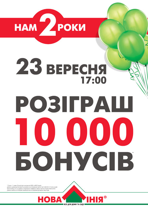 23 сентября в 17:00, в фойе нашего гипермаркета "Новая Линия" мы разыграем 10 000 бонусов !
