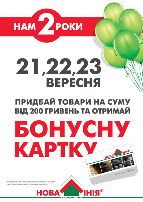 21, 22 и 23 сентября 2012 года, все покупатели, которые совершат покупку на сумму от 200 грн., получат бонусную карточку, с помощью которой можно будет накапливать и тратить бонусы на последующие покупки!