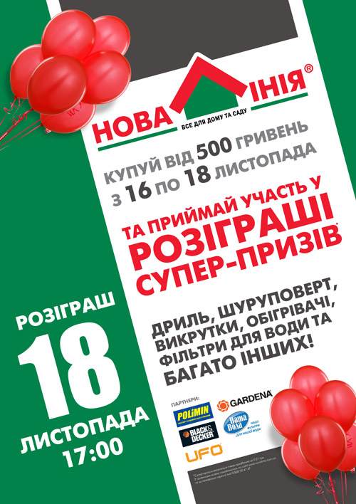 18 ноября в 17:00 состоится розыгрыш супер-призов среди которых - дрели, шуруповерты, обогреватели, фильтры для воды и многое другое!