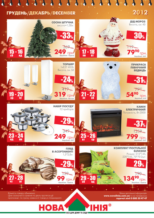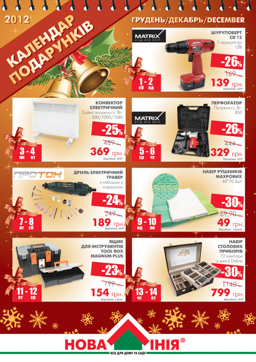 Календарь подарков действует на территории всех гипермаркетов "Новая Линия" по Украине.