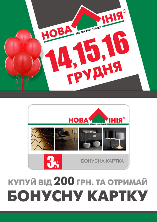 14, 15 и 16 декабря гипермаркет "Новая Линия" Кременчуг празднует свой четвертый день Рождения! В честь этого знаменательного события мы подготовили море сюрпризов и подарков для всех наших покупателей!