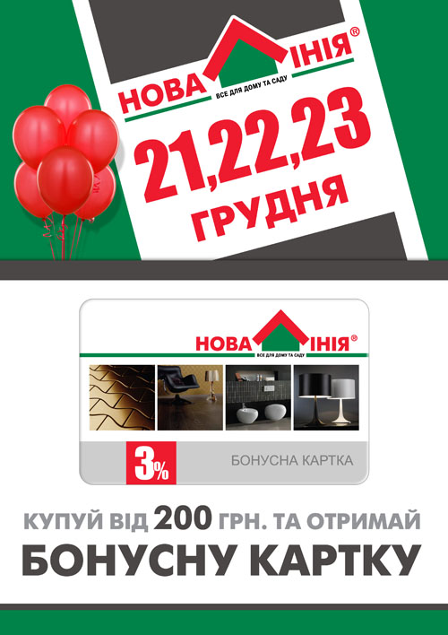 Каждый, кто совершит покупку от 200 грн., получает в подарок 3% бонусную карточку, которая позволит накапливать бонусы и тратить их на свои последующие покупки!