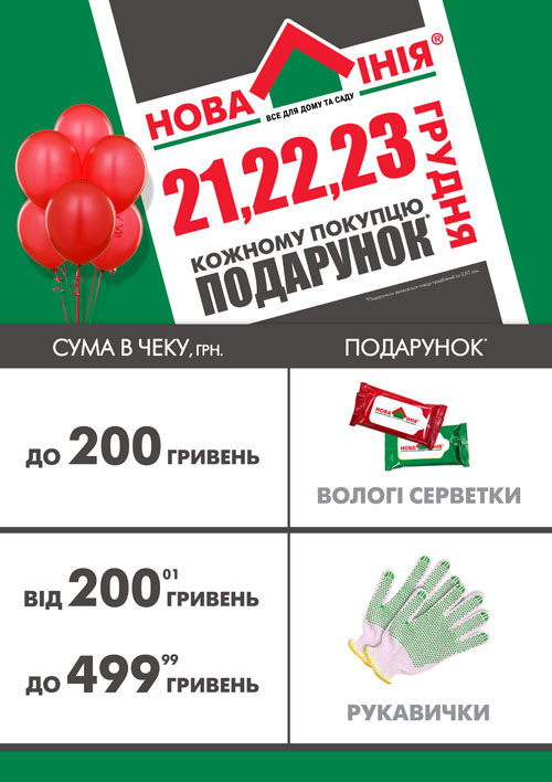 Все покупатели, у которых сумма в чеке будет до 200 грн., получат в подарок влажные салфетки! Те покупатели, сумма по чеку у которых будет от 200 до 500 грн., получат в подарок удобные перчатки!