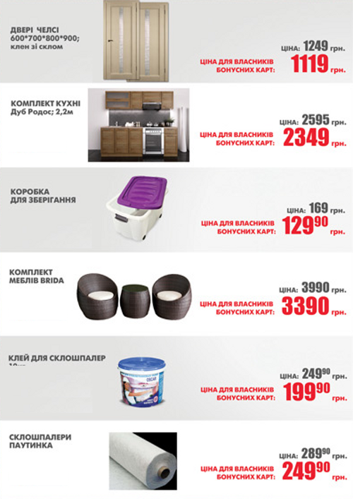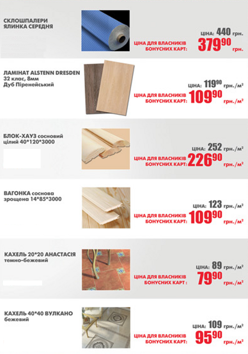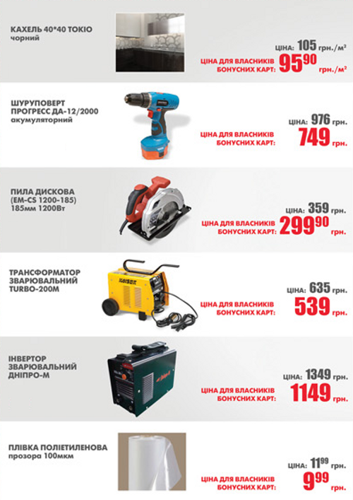 Акция! Специальные цены на товары для владельцев бонусных карт! С 15 по 28 февраля.