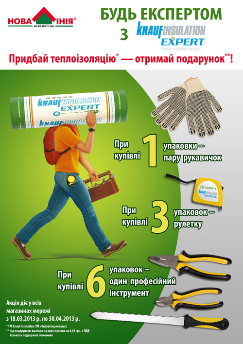 Во всех наших 16 гипермаркетах "Новая Линия" по всей Украине, с 18 марта по 30 апреля проходит совместная акция с ТМ "Knauf Insulation"!