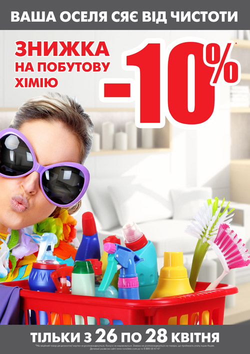 Только 26, 27 и 28 апреля, во всех гипермаркетах "Новая Линия" скидка -10% на бытовую химию!