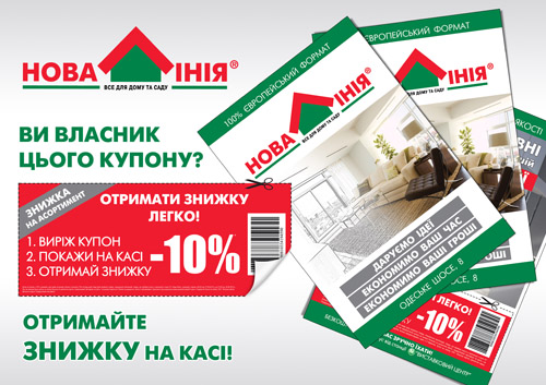 Чтобы получить заветную скидку - вырежьте купон, представленный на экране, распечатайте и предъявите на кассе гипермаркета в Чабанах, по адресу: Киевская обл., пгт.Чабаны, Одесское шоссе, 8