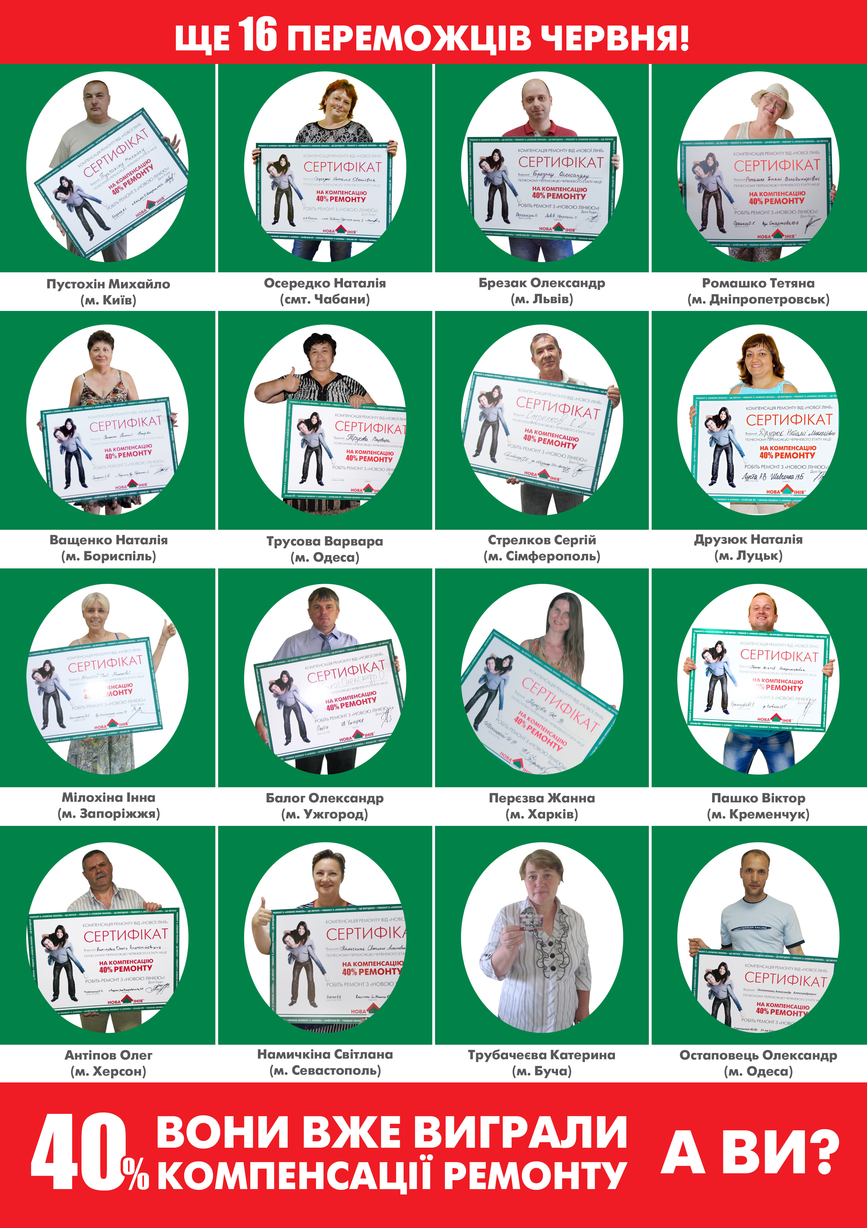 Встречаем победителей 40% компенсации ремонта!
