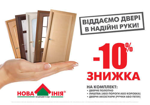 Огромный выбор дверей для различных жилых помещений, во всех 16 гипермаркетах "Новая Линия" по Украине!