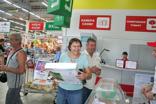 С самого утра гипермаркет начал заполняться посетителями, ведь для каждого из них, в честь нашего дня рождения, мы подготовили огромное количество подарков и сюрпризов!