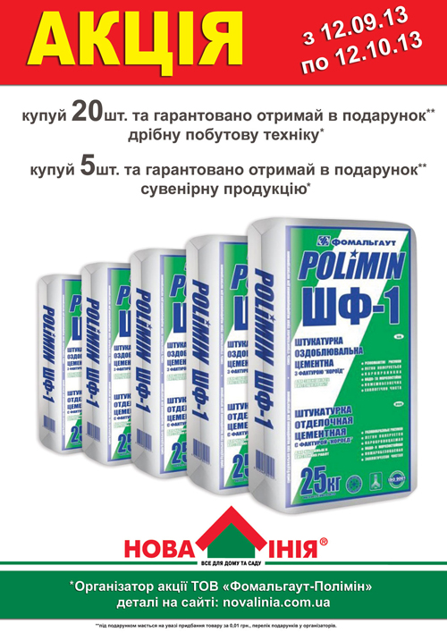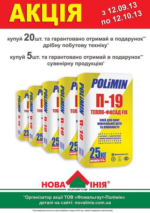 с 12.09.13 по 12.10.13 во всех гипермаркетах "Новая Линия" действует совместная акция с ТМ "Фомальгаут-Полимин" !