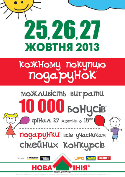 Финал выбора двух победителей, каждый из которых получит по 5000 бонусов состоится 27 октября в 18:00, в фойе гипермаркета. Стать участником финала может каждый покупатель, который совершит покупку на сумму от 500 грн., одним чеком. Но, даже если сумма ваших покупок была меньше 500 грн., у вас будет возможность выиграть моментальный подарок на месте!