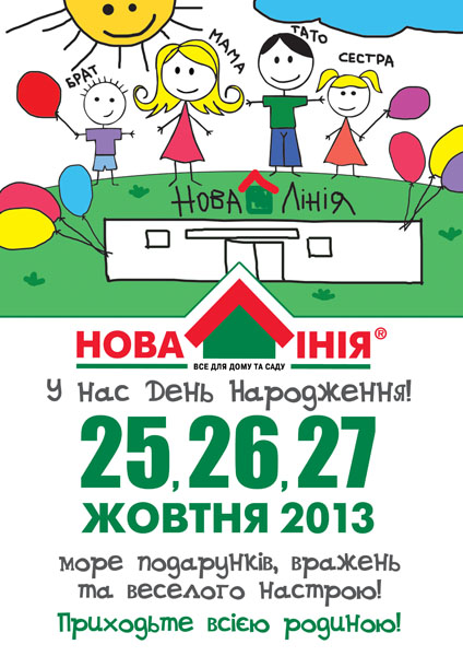 Приглашаем вас 25, 26 и 27 октября, на празднование пятого Дня Рождения гипермаркета "Новая Линия", расположенного по адресу: г. Ужгород, ул. Бабьяка, 48. Вас ожидает множество подарков и конкурсов в течение трех праздничных дней!