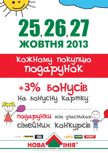 Покупатели, которые придут с детьми смогут поучаствовать в семейных конкурсах и получить интересные подарки! Все владельцы бонусных карт гарантированно получат +3% бонусов на свою бонусную карточку! Приходите, будет весело!
