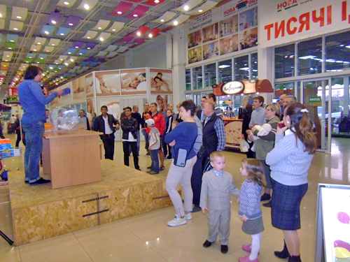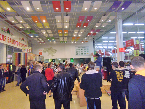 С самого утра гипермаркет начал заполняться посетителями, ведь для каждого из них, в честь нашего дня рождения, мы подготовили огромное количество подарков и сюрпризов! На протяжении трех дней всех наших гостей ожидала обширная программа с розыгрышами моментальных призов, раздачей подарков и дополнительных бонусов на карту!
