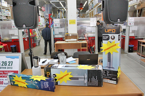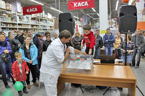С самого утра гипермаркет начал заполняться посетителями, ведь для каждого из них, в честь нашего дня рождения, мы подготовили огромное количество подарков и сюрпризов! На протяжении трех дней всех наших гостей ожидала обширная программа с розыгрышами моментальных призов, раздачей подарков и дополнительных бонусов на карту!