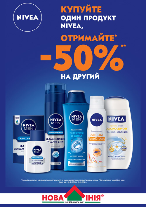 АКЦИЯ: 50% скидка на продукцию ТМ «Nivea»
