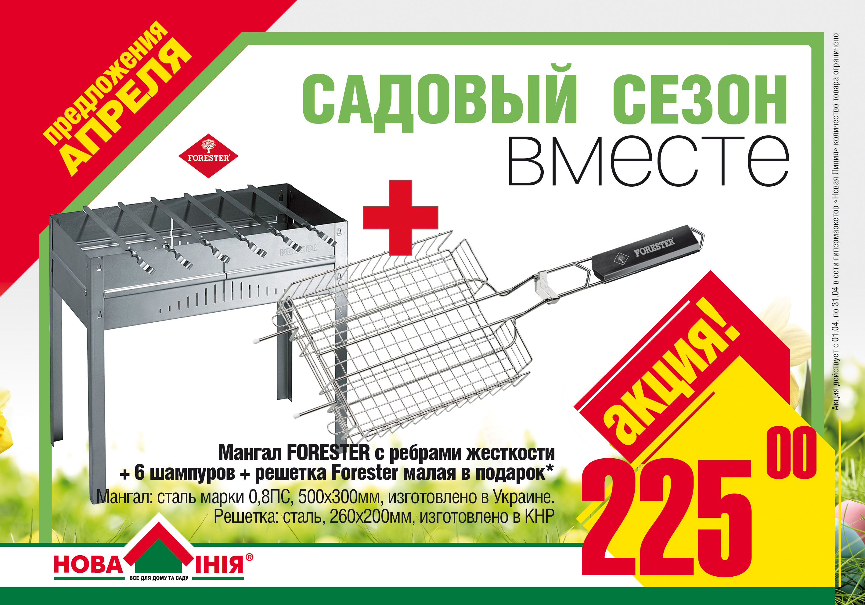 Раскладной мангал Forester с ребрами жесткости за 225 грн. + 6 шампуров + решетка в подарок