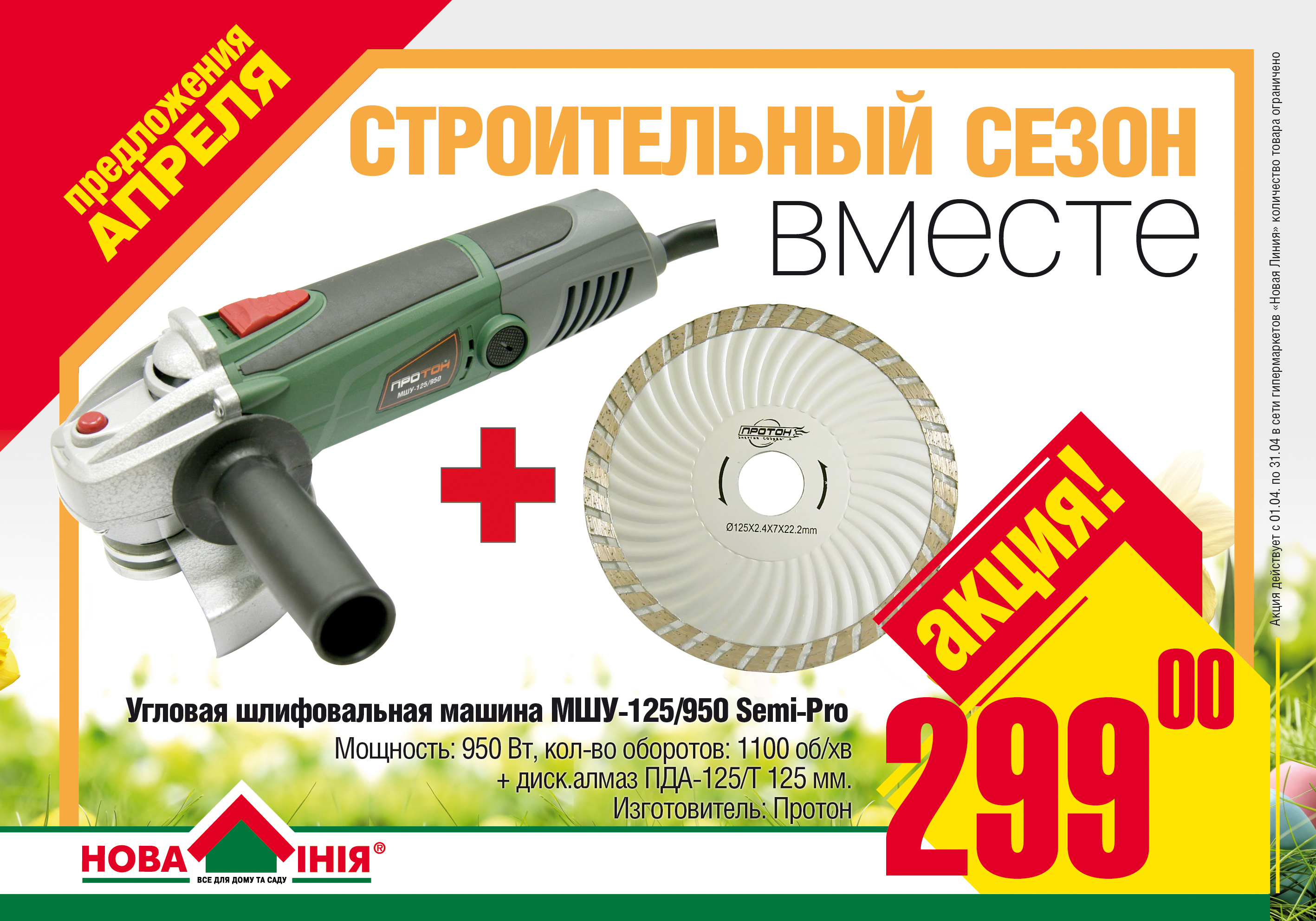 Угловая шлифовальная машина Протон и алмазный диск всего за 299 грн.