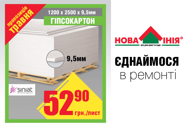 Гиспокартон Siniat всего по 52,9 грн. за лист
