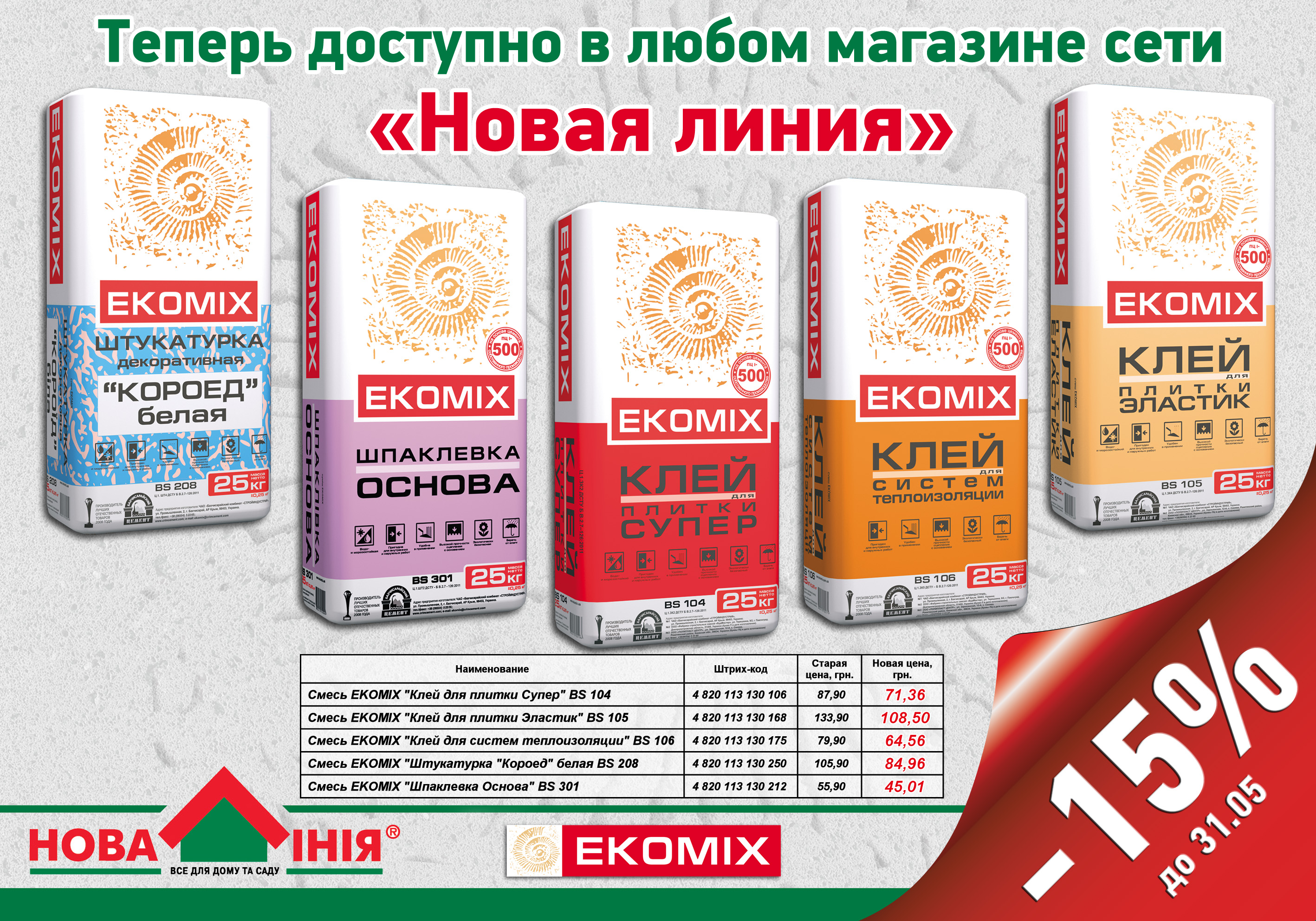 АКЦИЯ: Специальные цены на клея и смеси Ekomix только в Новой Линии
