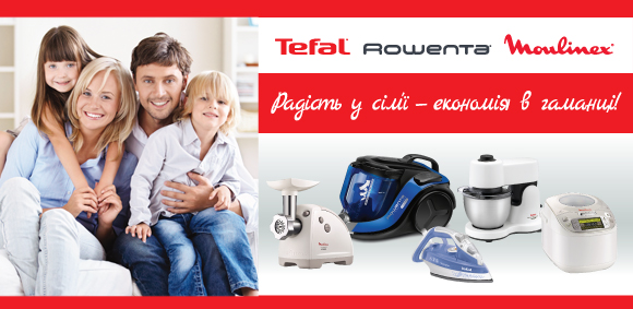 Надзвичайна вигода на ТМ Tefal, Rowenta та Moulinex. «Радість у сім’ї – економія в гаманці!»